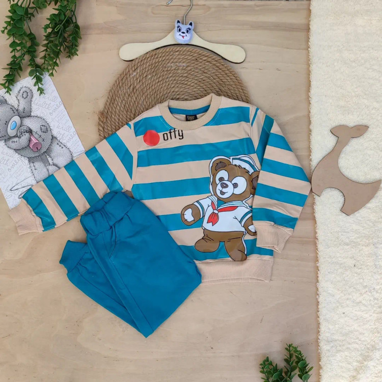 ست بلوز و شلوار دورس پنبه سه نخ لاکرا پسرانه مدل خرسی ملوان چاپ تضمینی