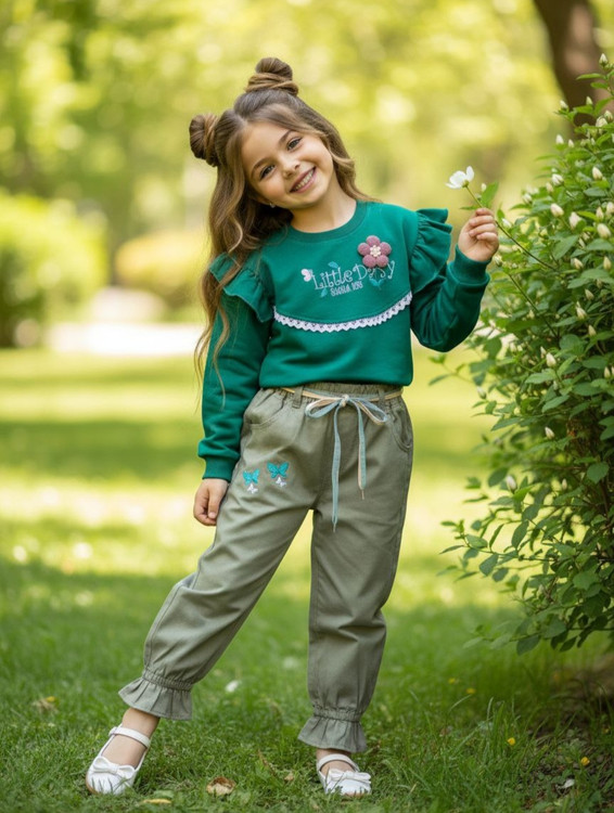 بلوز شلوار دخترانه جنس بلوز پنبه دورس لاکرا دار اعلا جنس شلوار کتان پنبه کجراه430گرم مدل یلدایی little daisy سایز35تا60