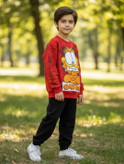 ست بلوز شلوار پسرانه جنس دورس پنبه لاکرا دارمدل گارفیلد دورنگ آبی و قرمز سایز40تا55